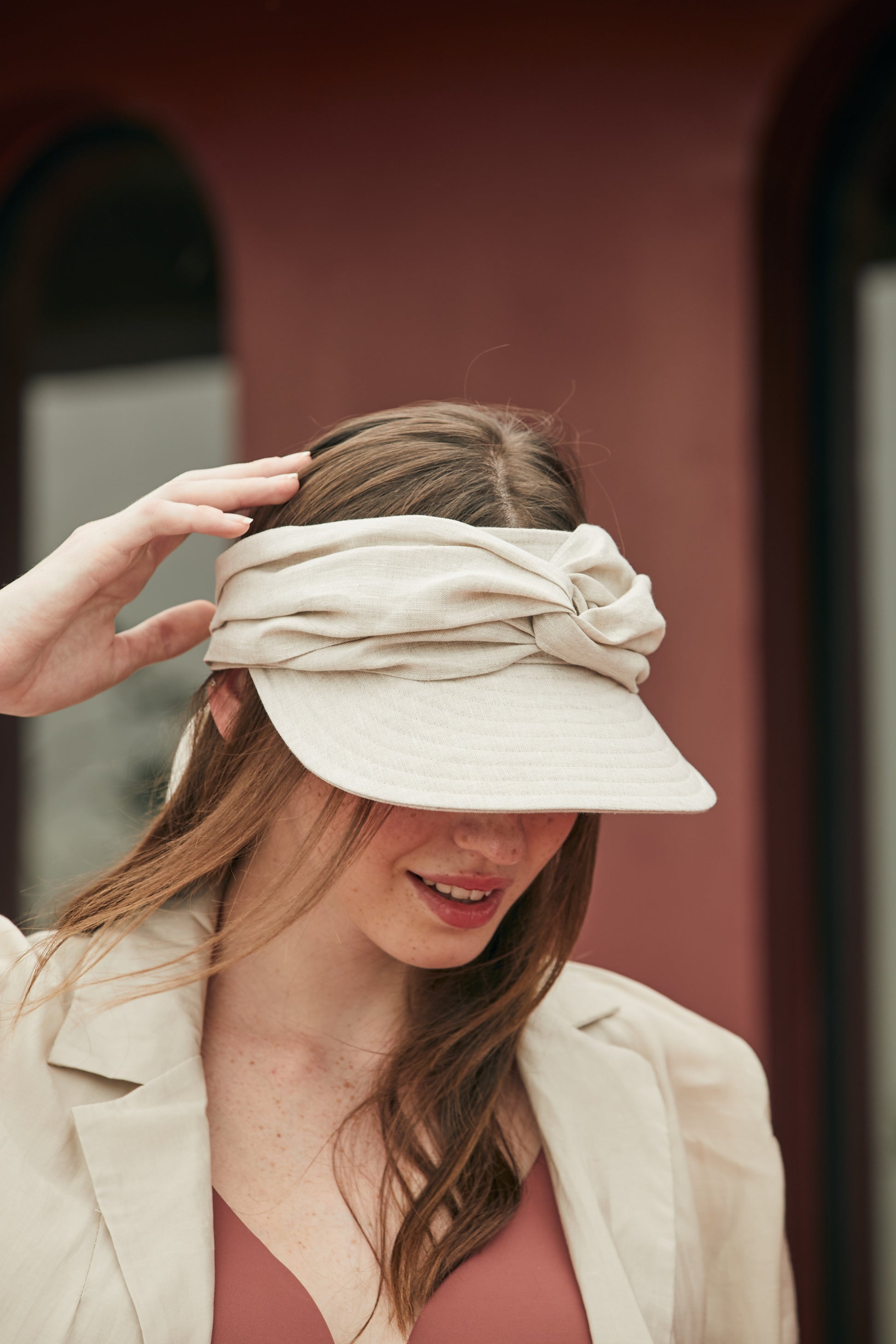 Lightweight, graceful, and endlessly wearable — the FREYA Visor captures the essence of effortless sophistication. Crafted from breathable linen, its softly structured form offers comfort and coverage while maintaining an elegant, feminine silhouette.