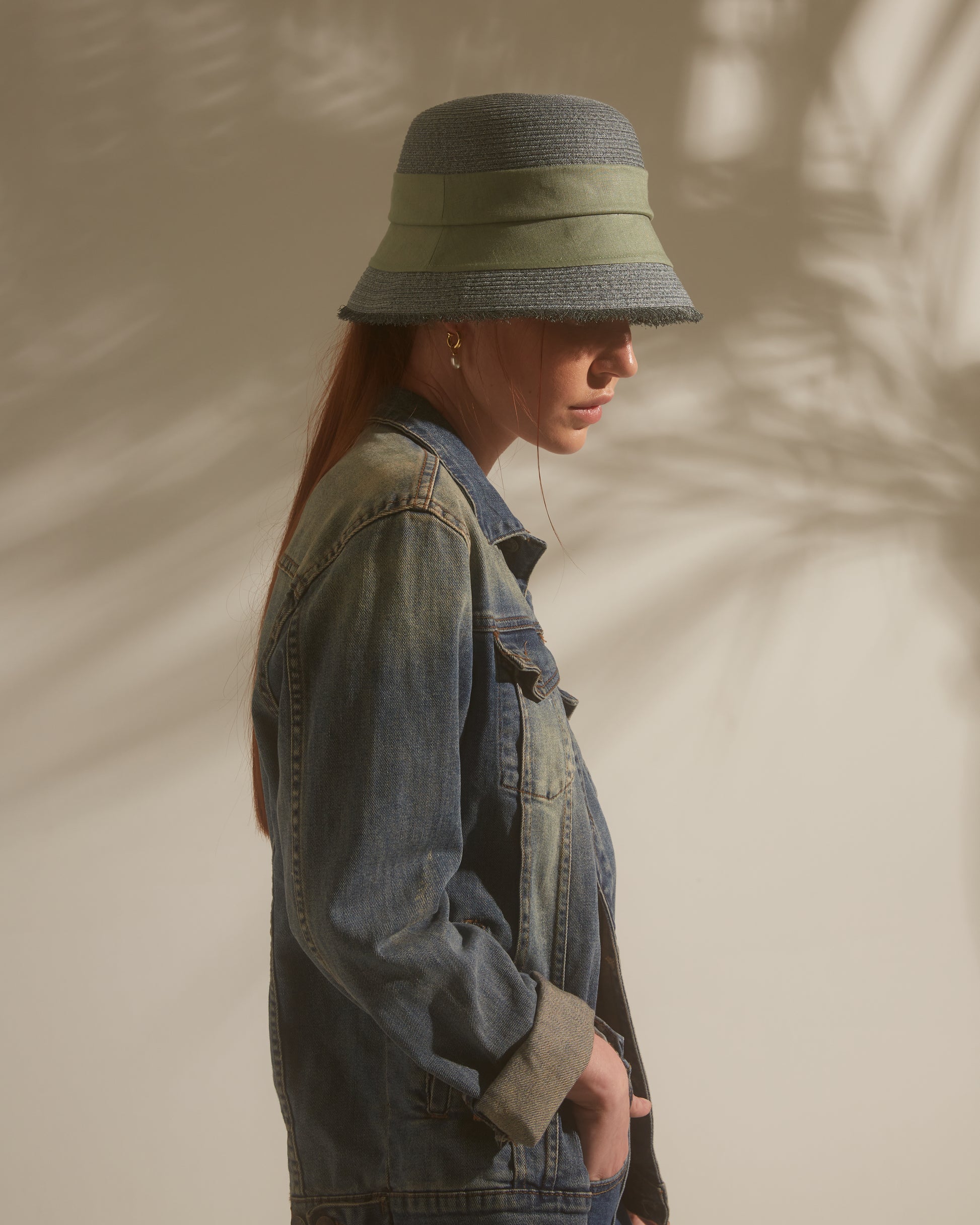 Refined yet effortlessly relaxed, the RAENI Bucket Hat redefines everyday elegance through natural texture and thoughtful design. Crafted from premium linen and a unique paper material, it offers a lightweight, breathable structure that drapes softly while maintaining its sculpted form.