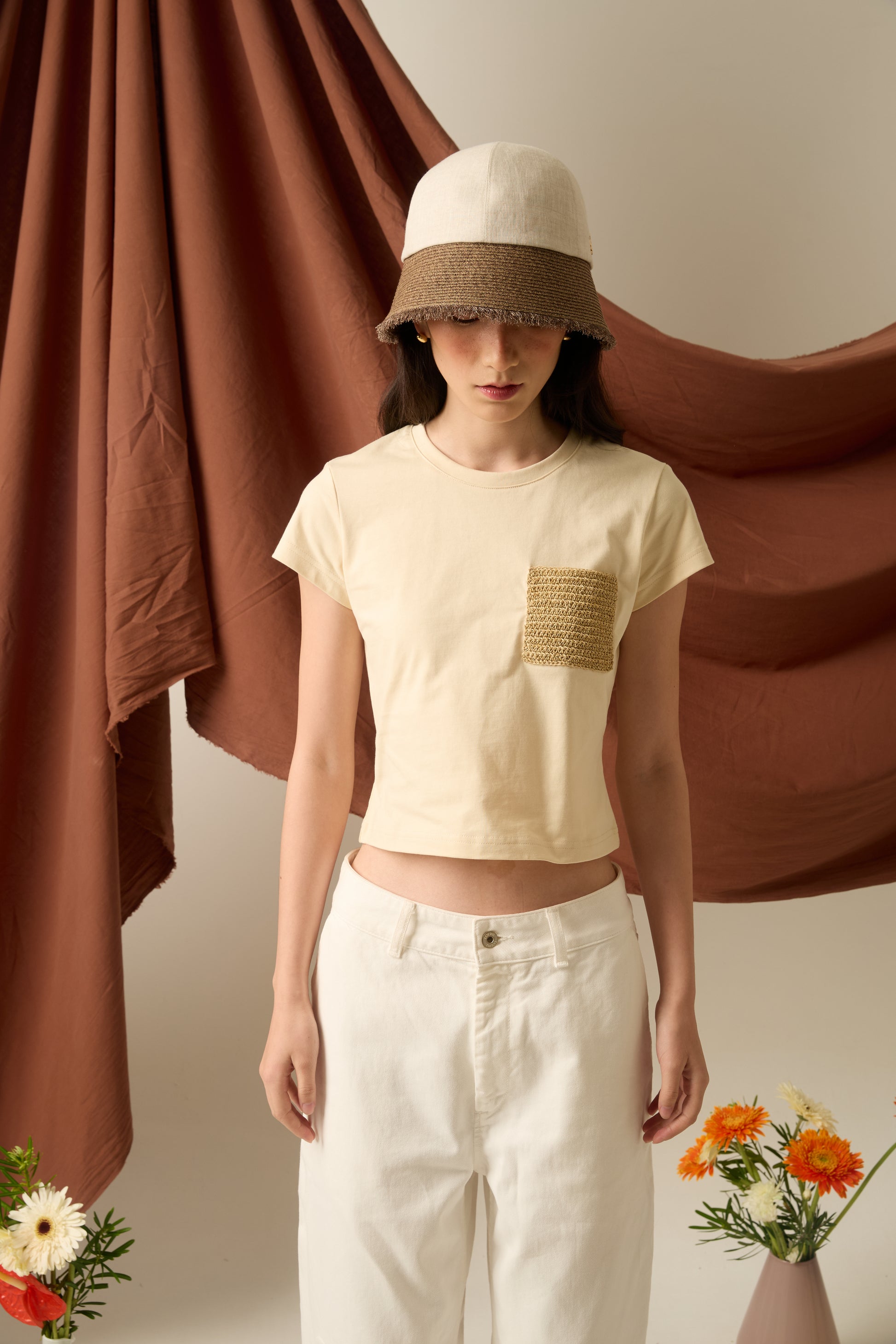 SUNEV – WENDY Crochet Pocket Crop Tee