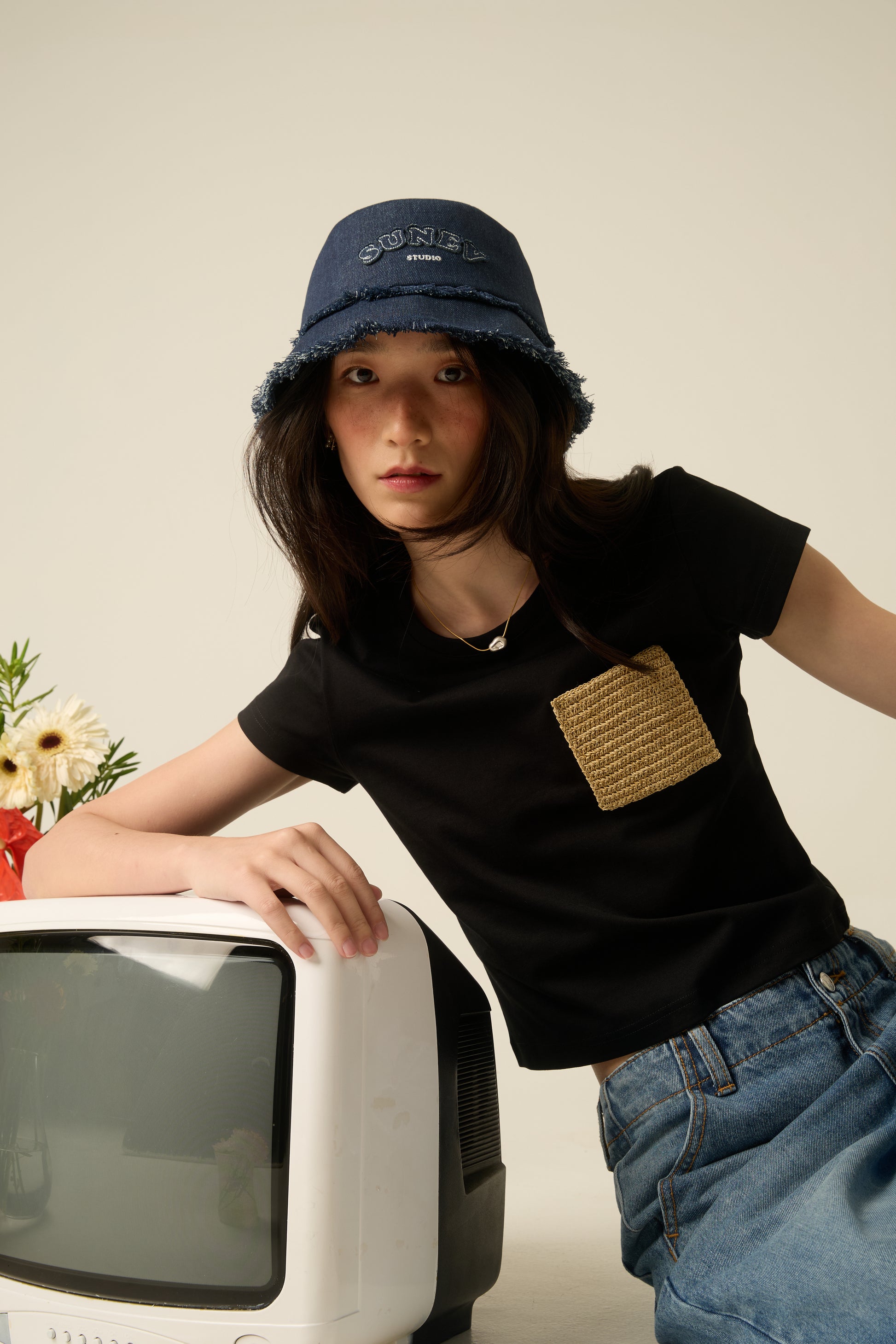 Effortless and versatile, the WENDY Crochet Pocket Crop Tee blends comfort with artisanal detail. Made from 100% soft cotton, this cropped t-shirt features a hand-crocheted pocket crafted from natural washable paper (Washi) — a signature material of SUNEV known for its lightweight texture and durability.